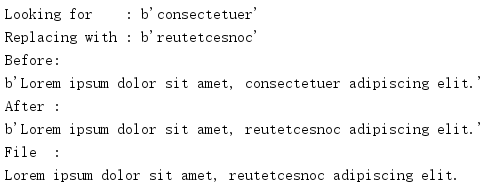 内存的文件中第一行中间的单词“consectetuer”将被替换。