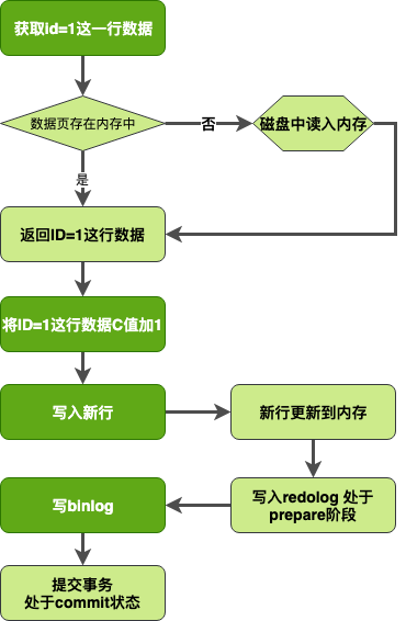 仍然用前面的update语句来做例子,当前ID=1的行,字段c的值是1。