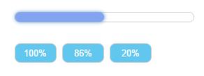 <div class="progress_area"> <span id="progress" class="progress_bac"></span> </div> <input type="button" class="progress-inp" value="100%" οnclick="progress(100);"/> <input type="button" class="progress-inp" value="86%" οnclick="progress(86);" /> <input type="button" class="progress-inp" value="20%" οnclick="progress(20);"/>