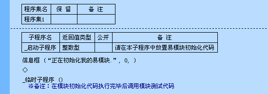 1、请将初始化易模块的代码放置到“_启动子程序”中,任何使用了此模块的易程序在运行前都会首先自动调用该子程序。如果在“_启动子程序”中发现初始化失败,请返回 -1 ,系统会自动终止其所处易程序的执行;