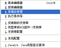 2、使用“工具->易模块管理”创建对应于该模块的模块程序集,该程序集的名称自动为“_模块_”加模块名称;(如图)