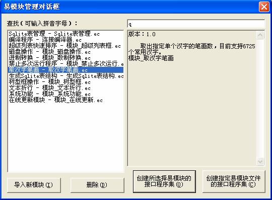 注:有关易模块的示例请见随系统所附带的“我的测试易模块”程序。