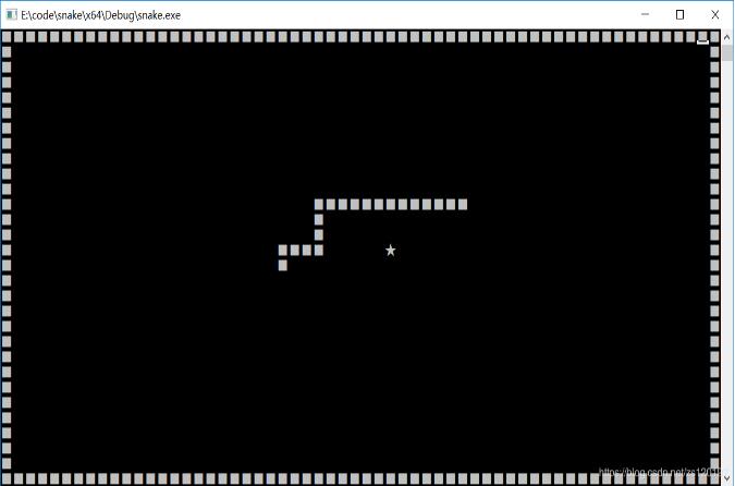 一个小方块字符■在x方向上占用两个位置,在y方向上占用一个位置。每一节蛇身由一个小方块构成。