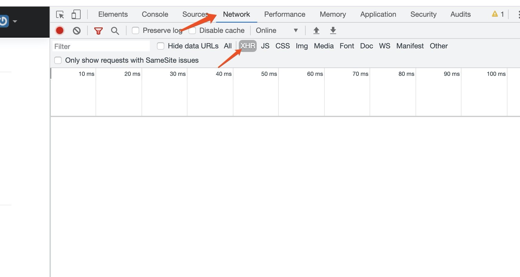 接着选择Network下的XHR: