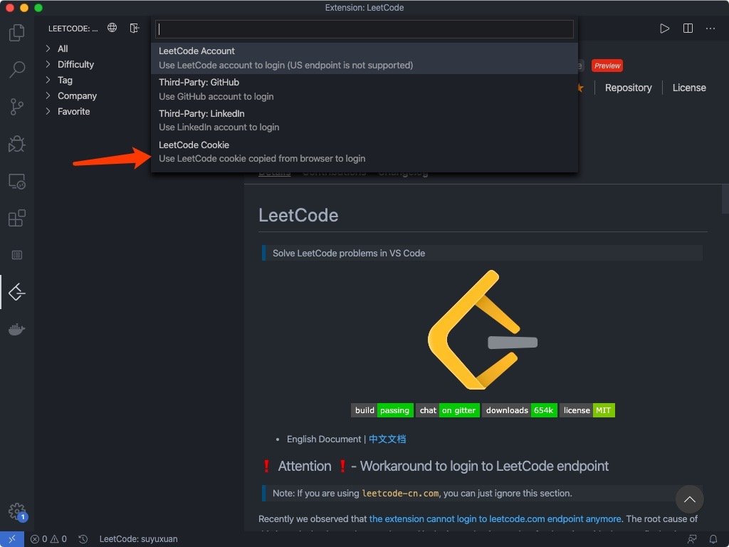 我猜测登录问题出现的原因应该是leetcode官方人为限制了第三方插件通过账号密码代理登录,所以解决方法很简单,就是我们使用cookie来进行模拟登录。