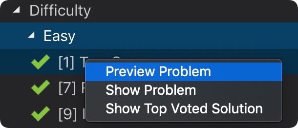 leetcode的使用很简单,和网页版差距不大,我们点开all可以看到所有的问题,我们点击问题的标题会自动为我们加载题目的详细信息,已经通过的问题会打上绿色的勾。