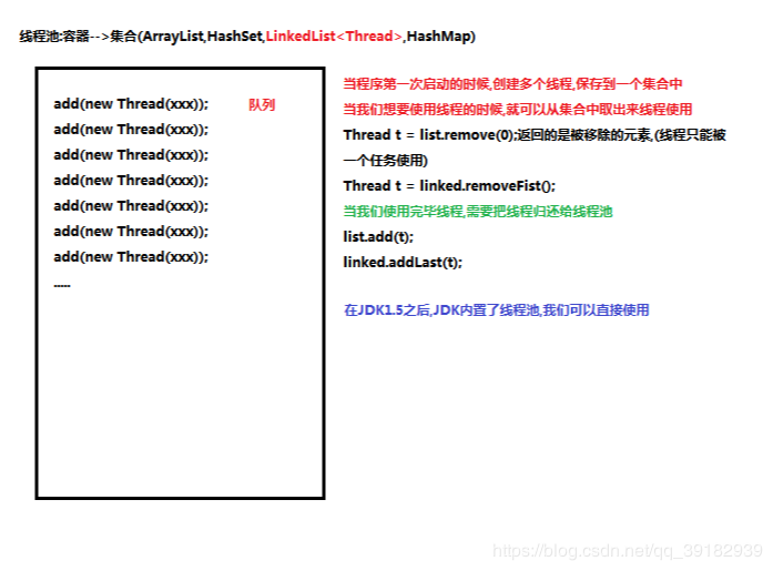 线程池其实就是一个容纳多个线程的容器,其中的线程可以反复使用,省去了频繁创建线程对象的操作,无需反复创建线程而消耗过多资源。