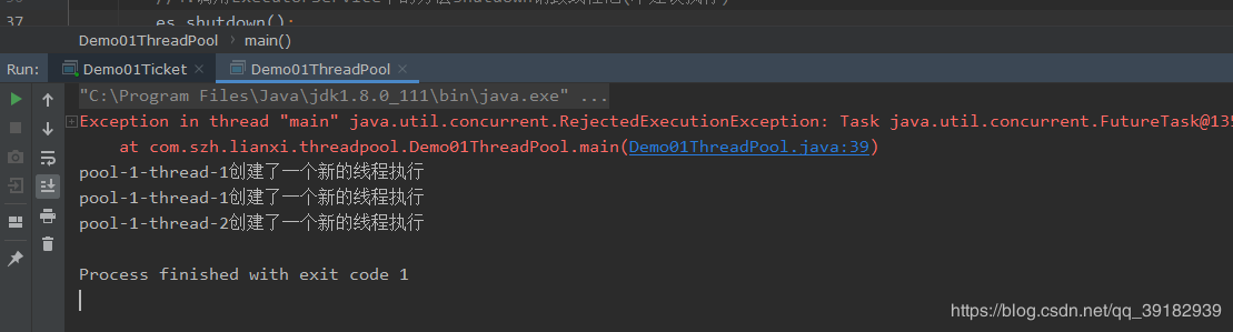 es.submit(new RunnableImpl());//pool-1-thread-2创建了一个新的线程执行