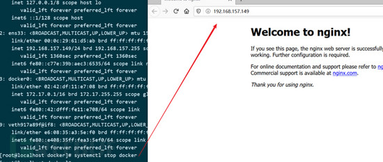 测试时再关闭 docker 守护进程后,nginx 容器仍能正常提供访问。