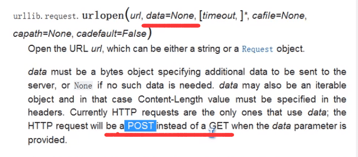 发现urlopen有一个data参数,如果参数没赋值(默认None)就是GET形式,如果data参数被赋值了,就以POST形式提交
