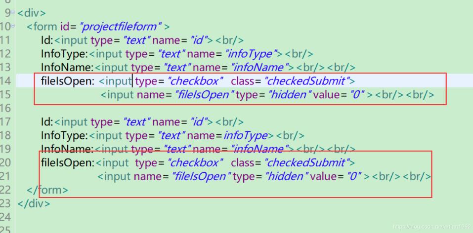 我们可以设置隐藏域来代替checkbox复选框传递数据,具体的页面修改如下:
