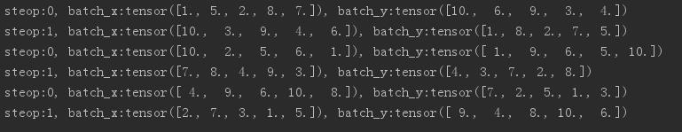 print("steop:{}, batch_x:{}, batch_y:{}".format(step, batch_x, batch_y))