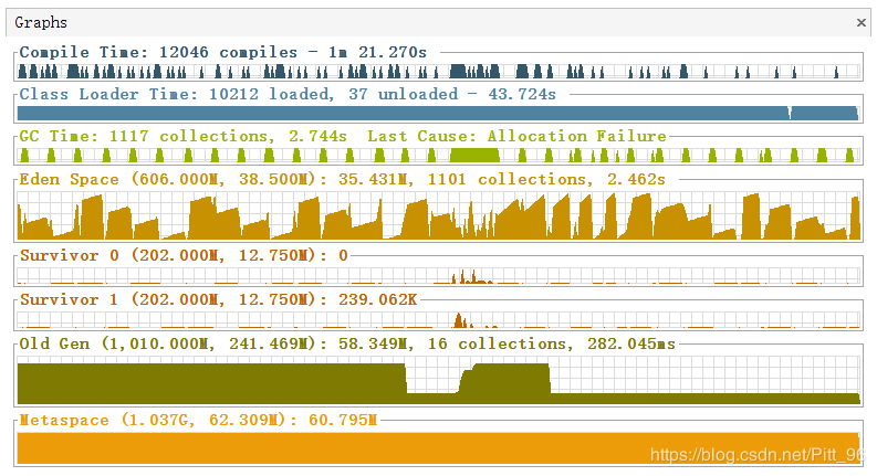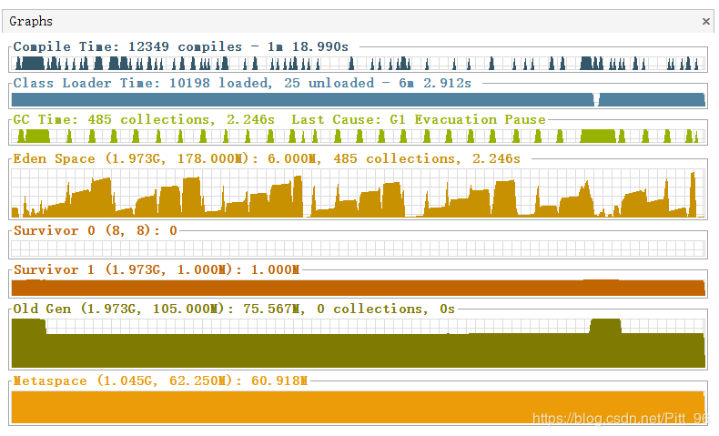 垃圾回收的CPU使用率曲线几乎看不到,CPU资源还有可利用的余地,为此想到更换原有的垃圾回收器来进行GC优化
