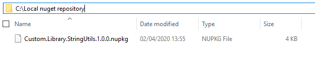 点击发布(Publish)后,我们可以在目录"C:\Local nuget repository"下看到,类库项目生成的NuGet文件就已经存在了: