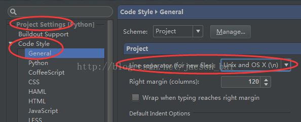 File--->Template Project Settings--->project settings--->Code Style--->General--->Line swparator(for new files):选择Unix and OS X(\N)