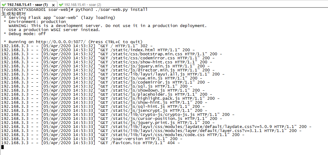 3. soar-web的启动脚本run.sh,不能正常启动;但是使用python./soar-web.py install却可以正常启动。