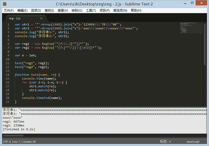 所以优化你的正则,然后用 new RegExp 可以大幅度提升程序的性能。