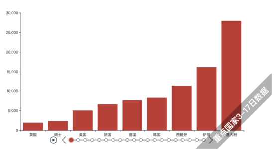 稍微解释一下修改的地方, get_value() 函数就是 将df1传进去,再把每一行的数据传出来 ,k是用来识别 调用次数 的,这样可以保证每次调用下一行的数据。接着在循环里面,将我们传出来的确诊数量和国家名使用Pandas进行排序并返回两个list,此时这 两个list一一对应并且确诊数量是降序排列