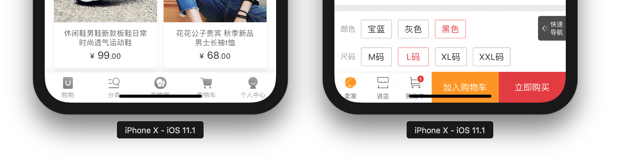 微信小程序适配iPhone X主要针对fix定位到底部的区域,比如详情页或购物车底部的按钮栏,会与iPhone X的Home Indicator横条重叠,这样在点击下方按钮时很容易误触发手势操作,如下图: