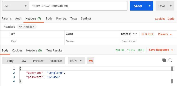 return new DemoVO("lengleng", "123456");