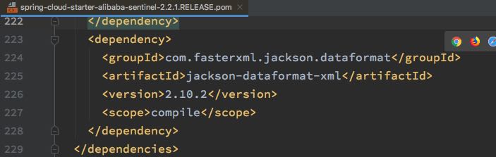 当升级至 spring cloud alibaba 2.2.1 时, sentinel 模块 引入以下依赖