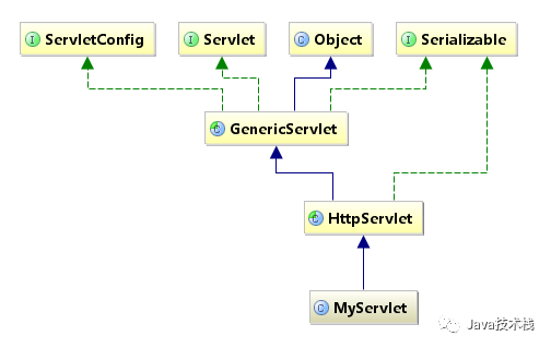 然后你就会得到如下图所示的继承关系图形,以自定义的Servlet为例: