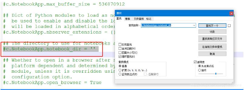 2)通过搜索关键词:c.NotebookApp.notebook_dir,定位到下面这行
