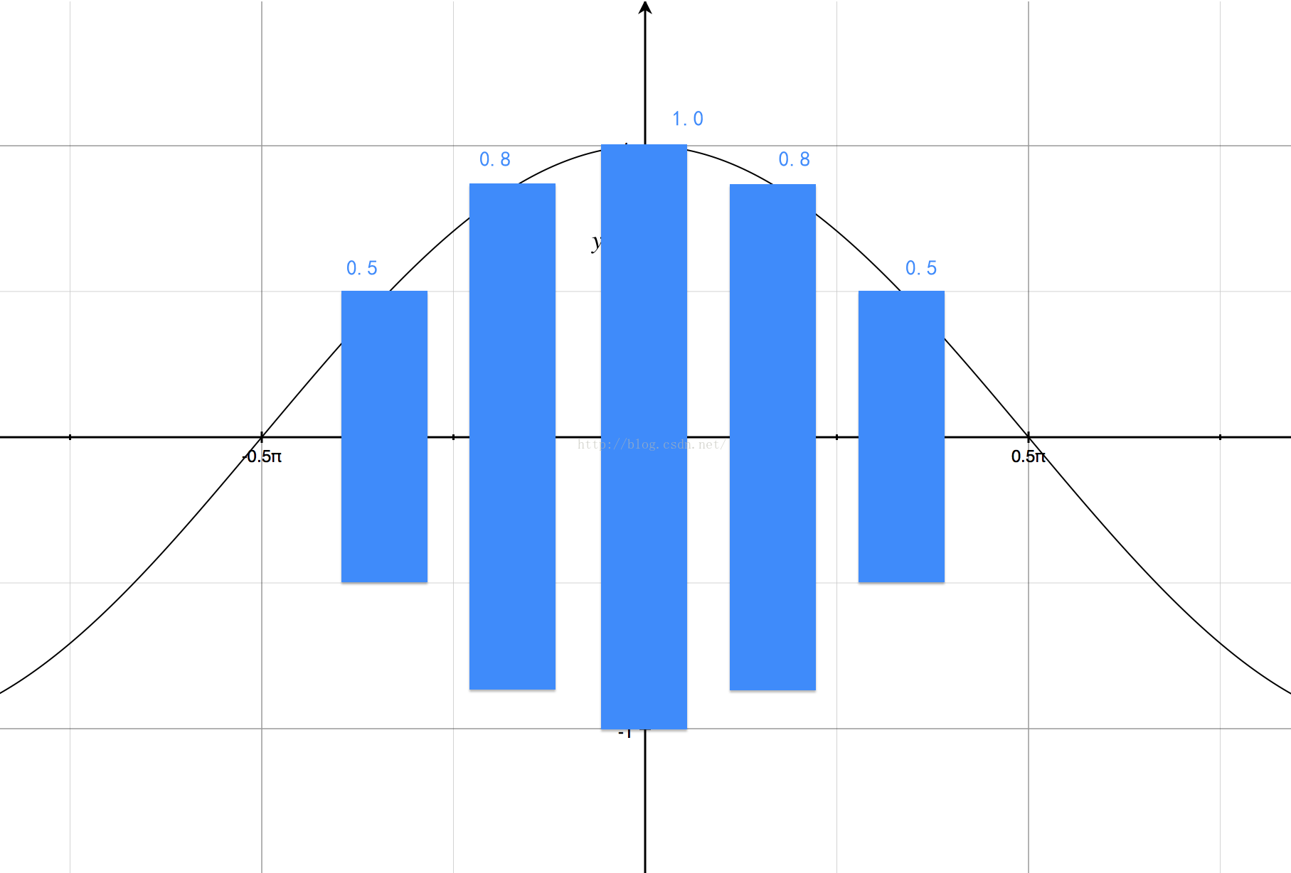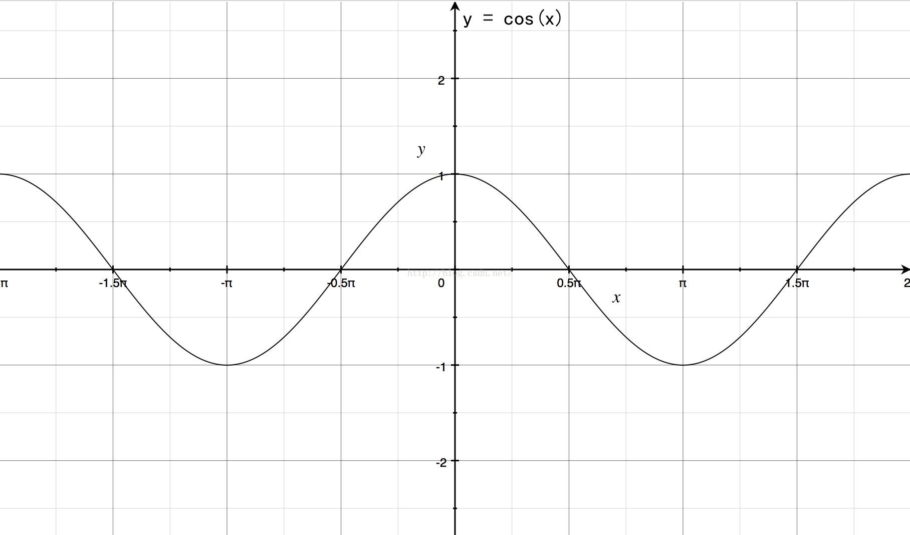 1、上面的动画效果是根据余弦函数的曲线特性实现的,先看一下函数曲线y=cos(x),在区间-π/2 到 π/2的范围内,y的值在x的0的是后是最大的,左右则越来越小。