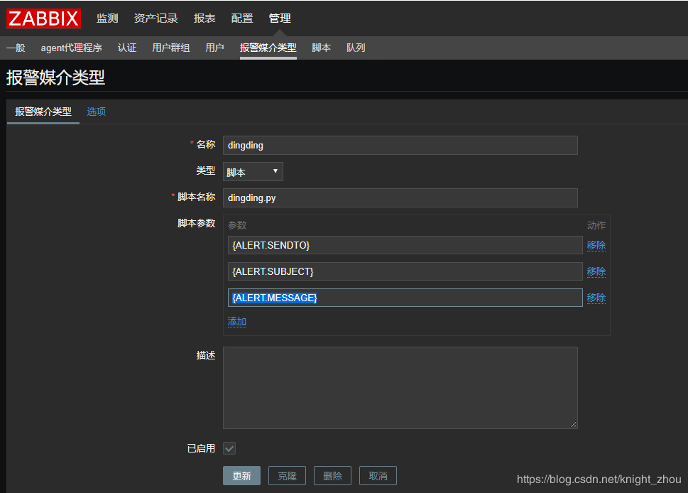 vim /usr/local/zabbix/share/zabbix/alertscripts/dingding.py