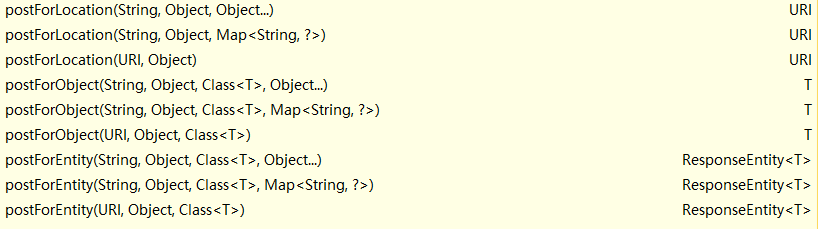 二restTemplate常用方法列表