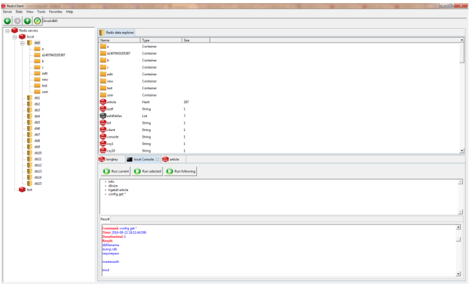 基于Java SWTJedis开发的可视化工具。开源免费,支持WindowsLinuxMac,地址:https://github.com/caoxinyu/RedisClient ,不过很久不更新了。