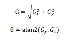 图像的边缘可以指向不同方向,因此经典Canny算法用了四个梯度算子来分别计算水平,垂直和对角线方向的梯度。但是通常都不用四个梯度算子来分别计算四个方向。常用的边缘差分算子(如Rober,Prewitt,Sobel)计算水平和垂直方向的差分Gx和Gy。这样就可以如下计算梯度模和方向: