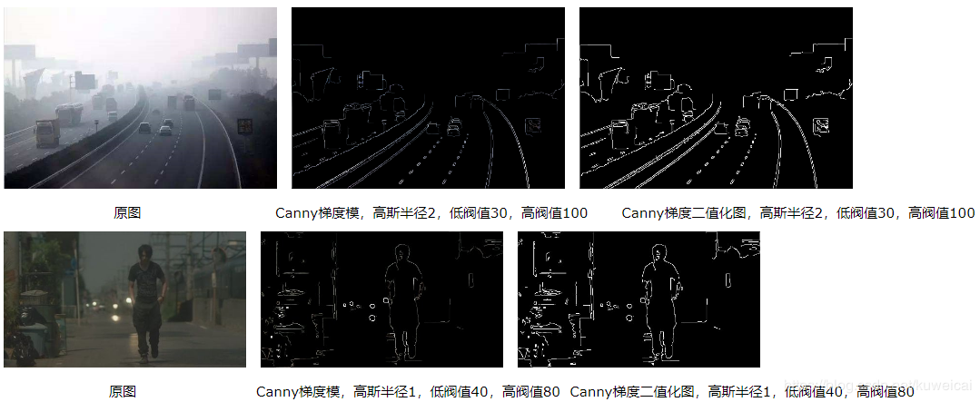 很明显,Canny边缘检测的效果是很显著的。相比普通的梯度算法大大抑制了噪声引起的伪边缘,而且是细化过的边缘,易于后续处理。对于对比度较低的图像,通过调节参数,Canny算法也能有很好的效果。