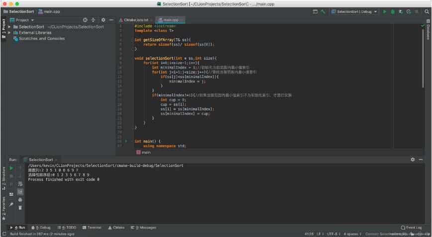for(int j=i+1;j<size;j++){//查找当前范围内最小值索引