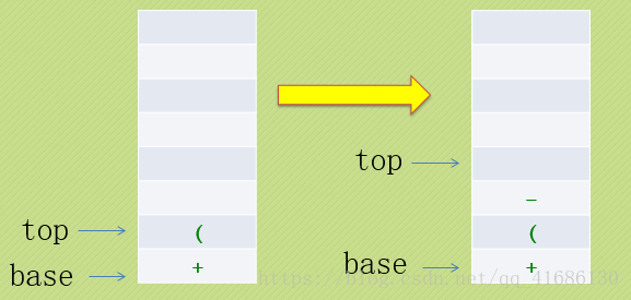 栈中第二个元素是加号,按理来说大家平起平坐,但是按照先来后到的原则,栈里的加号呆得太久了,也要出栈透透气。(同理如果栈里还有其他操作符,也是出栈)
