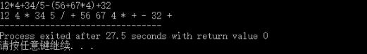 /*最后把栈中剩余的运算符依次弹栈打印*/