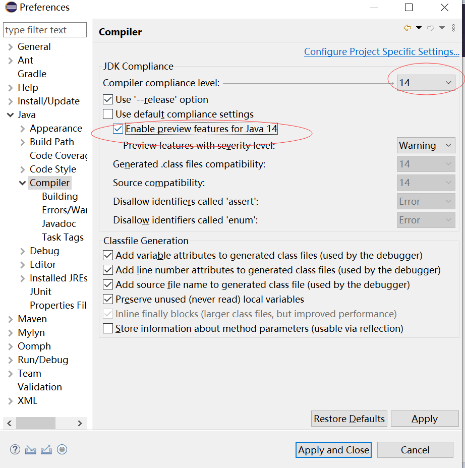 安装完成之后,就可以选择使用JDK 14的编译器,同时启用预览功能。