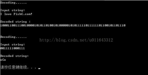 encode(codeTable,"I love FishC.com!");//对输入的字符串进行编码