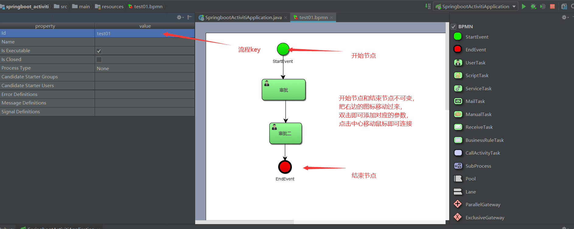 因为我的数据都是直接在流程图bpmn文件里面写好的,实际中肯定是在代码里面指定的