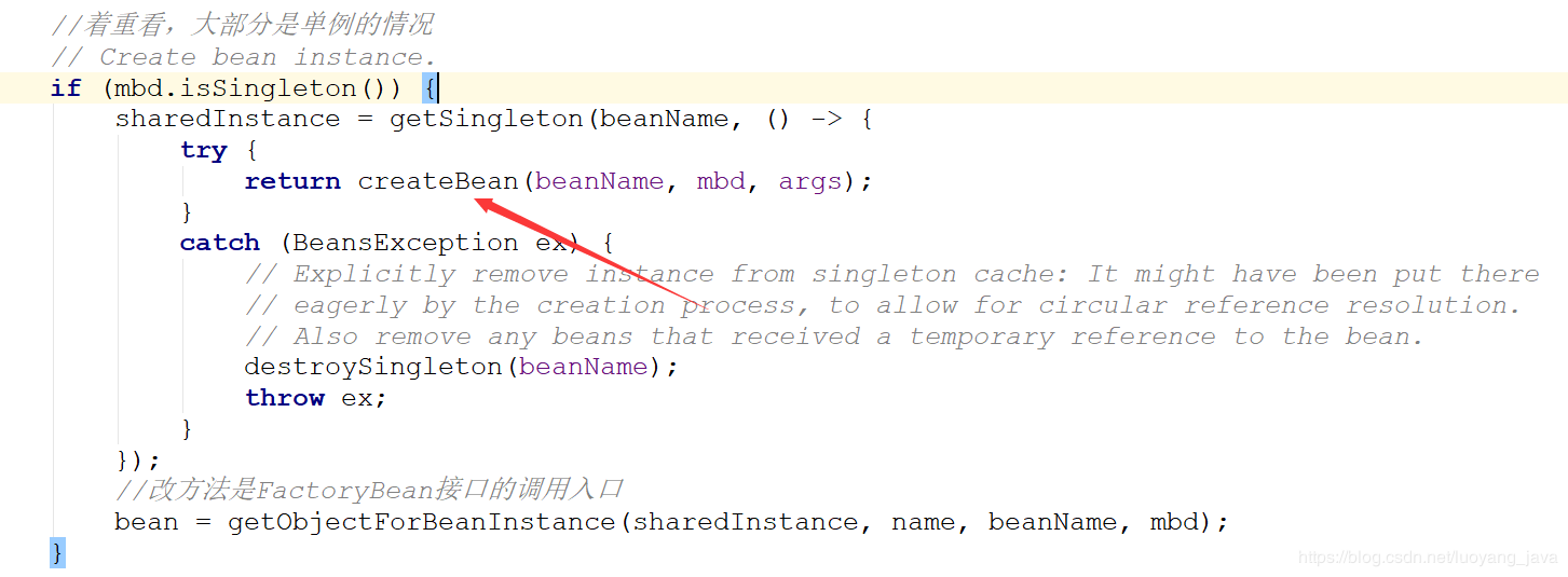 实例化从getBean方法看起,前面代码我就不贴了,这篇文章是给读过spring源码的人看的,没读过也看不懂,哈哈 。