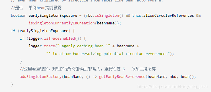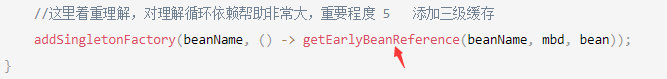 //这里着重理解,对理解循环依赖帮助非常大,重要程度 5  添加三级缓存