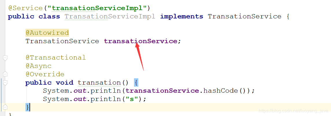 System.out.println(transationService.hashCode());