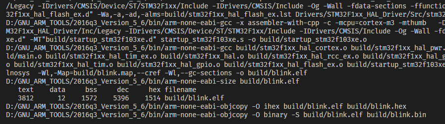 这样,在build目录下面可以找到blink.hex,blink.elf,blink.bin这几个文件。至此,编译成功。
