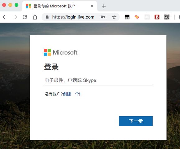 首先访问 https://login.live.com/ 登录你的Microsoft账号,没有的先注册一个: