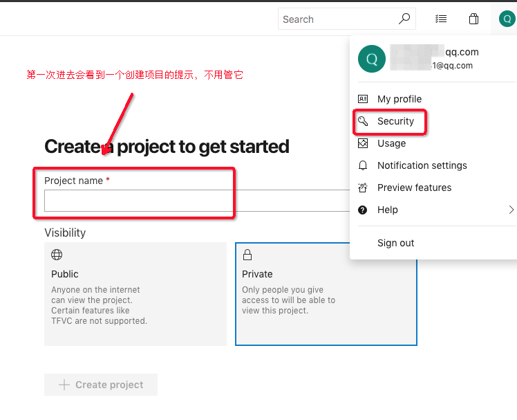 然后访问: https://aka.ms/SignupAzureDevOps ,如果你从来没有使用过Azure,那么会看到如下提示:
