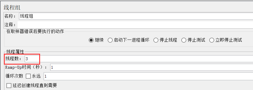 3.在线程组中添加一个循环控制器,执行次数为3.