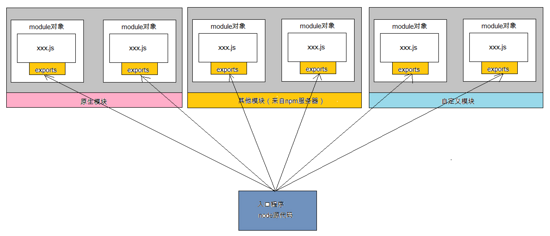 每一个js文件就是一个模块(json等其实也可以作为一个模块),对应的就是一个module对象。下面这一段程序,表示从外部引入一个模块,然后执行模块中的函数。