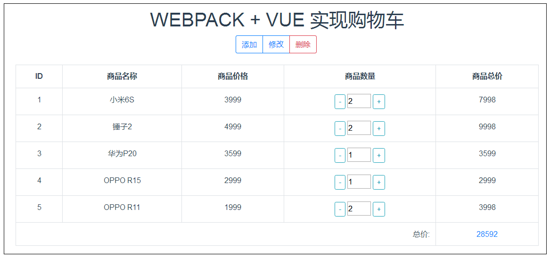 <h1>WEBPACK + VUE 实现购物车</h1>