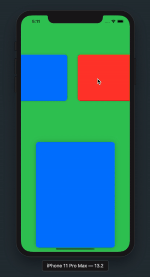 你可以在模拟器中运行下面的代码。这段代码的意思是,当你点击 ContentView 中的按钮时,它会计算 index 来选择 SplashView 中的颜色,同时也会触发 ColorStore 内部的更新。所以,当 SplashShape 图层添加到 SplashView 时,就会触发动画。
