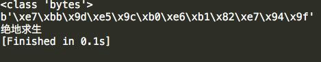 s = b'\xe7\xbb\x9d\xe5\x9c\xb0\xe6\xb1\x82\xe7\x94\x9f' print(type(s)) print(s) ss = str(s, 'utf8') print(ss)